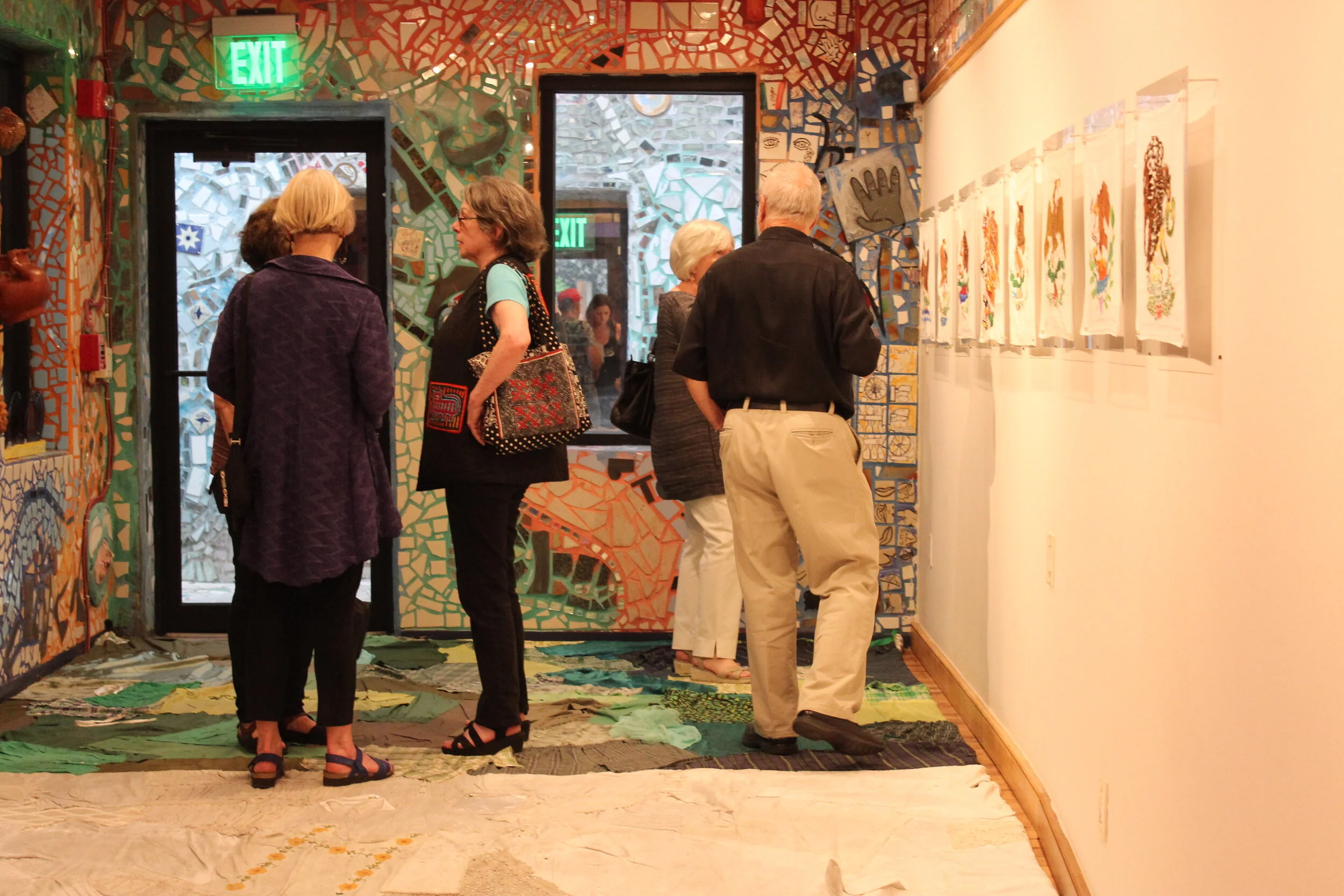 "Allá Abajo/Down Below" was a visual response to Philadelphia by artist Ornella Ridone. She was the first recipient of the Julia Zagar Residency for Women Artists, a program that supports contemporary female artists working in the tradition of handcrafting and folk art. Ridone, who lives in Oaxaca, Mexico, was invited to stay in Philadelphia in early 2017. Her pieces, all sewn on discarded clothing, featured stories from both Mexican and American residents, and illustrated the complex, multilayered relationship between the two countries. Click on the dots below the image to see more images from the exhibition.